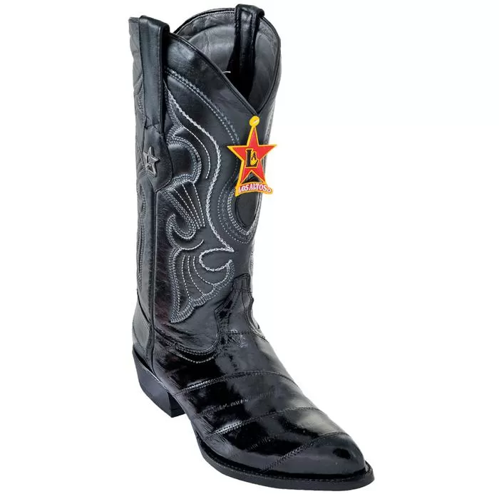 These exceptional quality genuine eel skin cowboy boots are handmade by one of the finest exotic boots manufacturers, Los Altos. Los Altos offers sensational exotic skin boots that are completely hand crafted and hand stitched. The inside is a butter soft lambskin leather for superior comfort and the sole is handstitched in leather for excellent traction. The insole is cushioned for added shock absorption. These boots will fit up to a “D” width due to the soft lambskin interior leather.