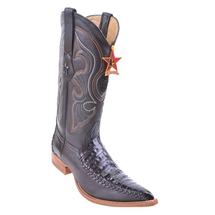 These exceptional quality genuine crocodile with deer skin cowboy boots are handmade by one of the finest exotic boots manufacturers, Los Altos. Los Altos offers sensational exotic skin boots that are completely hand crafted and hand stitched. The inside is a butter soft lambskin leather for superior comfort and the sole is handstitched in leather for excellent traction. The insole is cushioned for added shock absorption.
