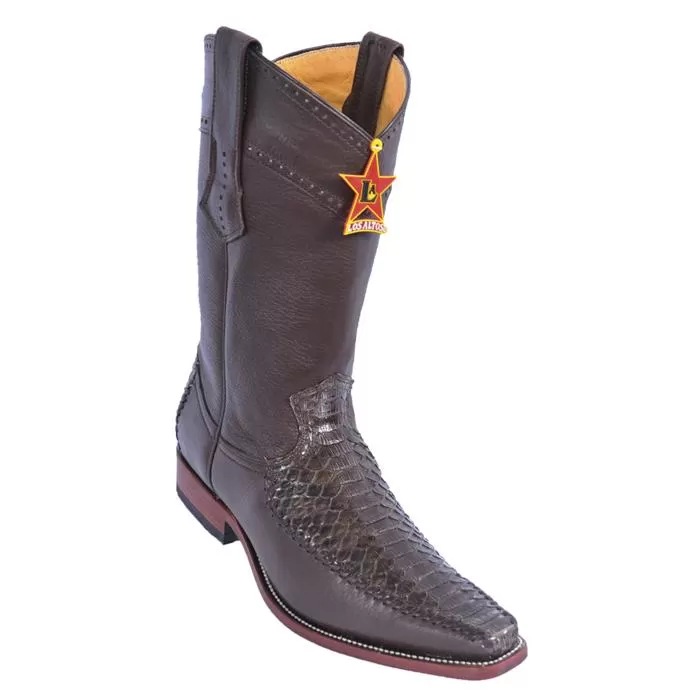 These exceptional quality genuine python deer skin cowboy boots are handmade by one of the finest exotic boots manufacturers, Los Altos. Los Altos offers sensational exotic skin boots that are completely hand crafted and hand stitched. The inside is a butter soft lambskin leather for superior comfort and the sole is handstitched in leather for excellent traction. The insole is cushioned for added shock absorption.